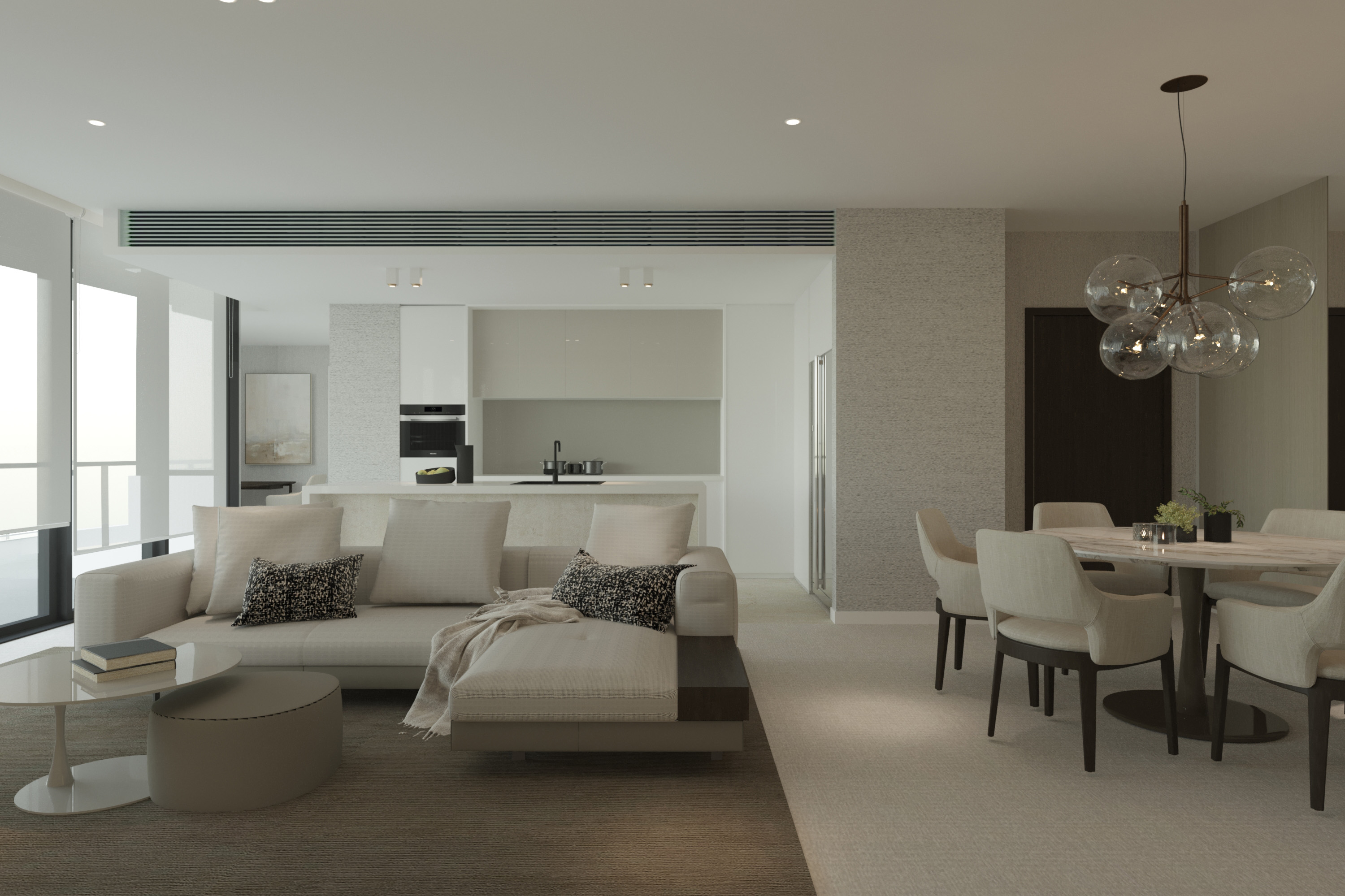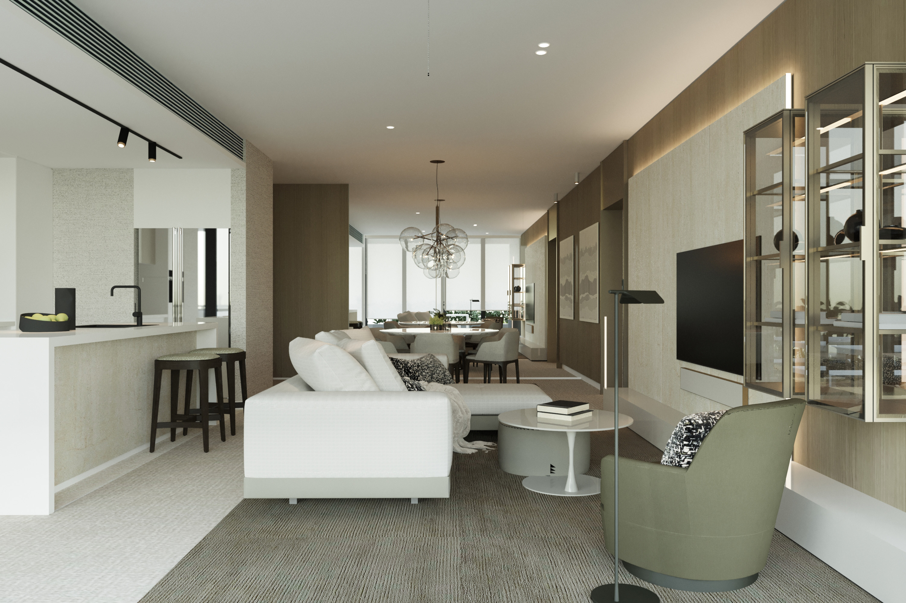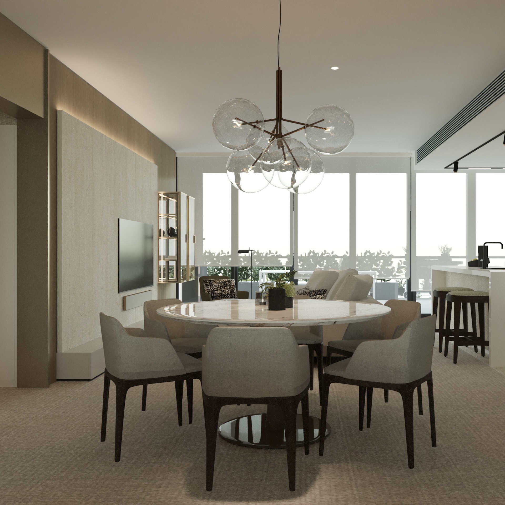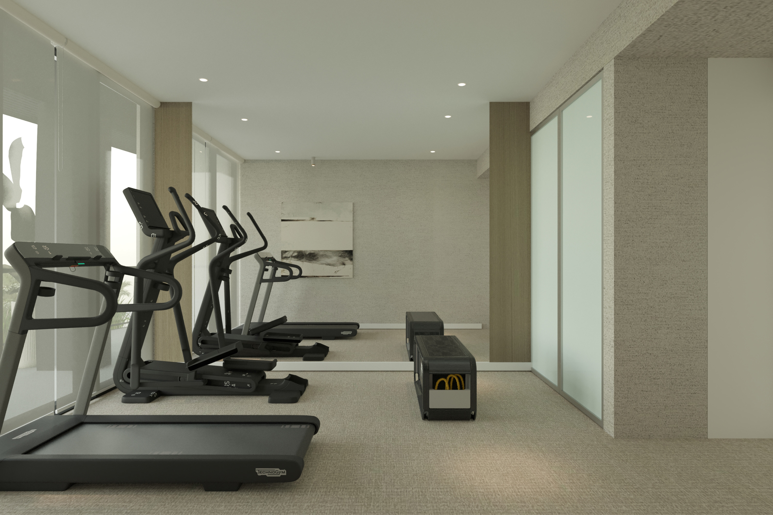 An open design with an island counter and round dining table promotes interactions and meaningful conversations. The gym room supports shared activities, ensuring health and togetherness.