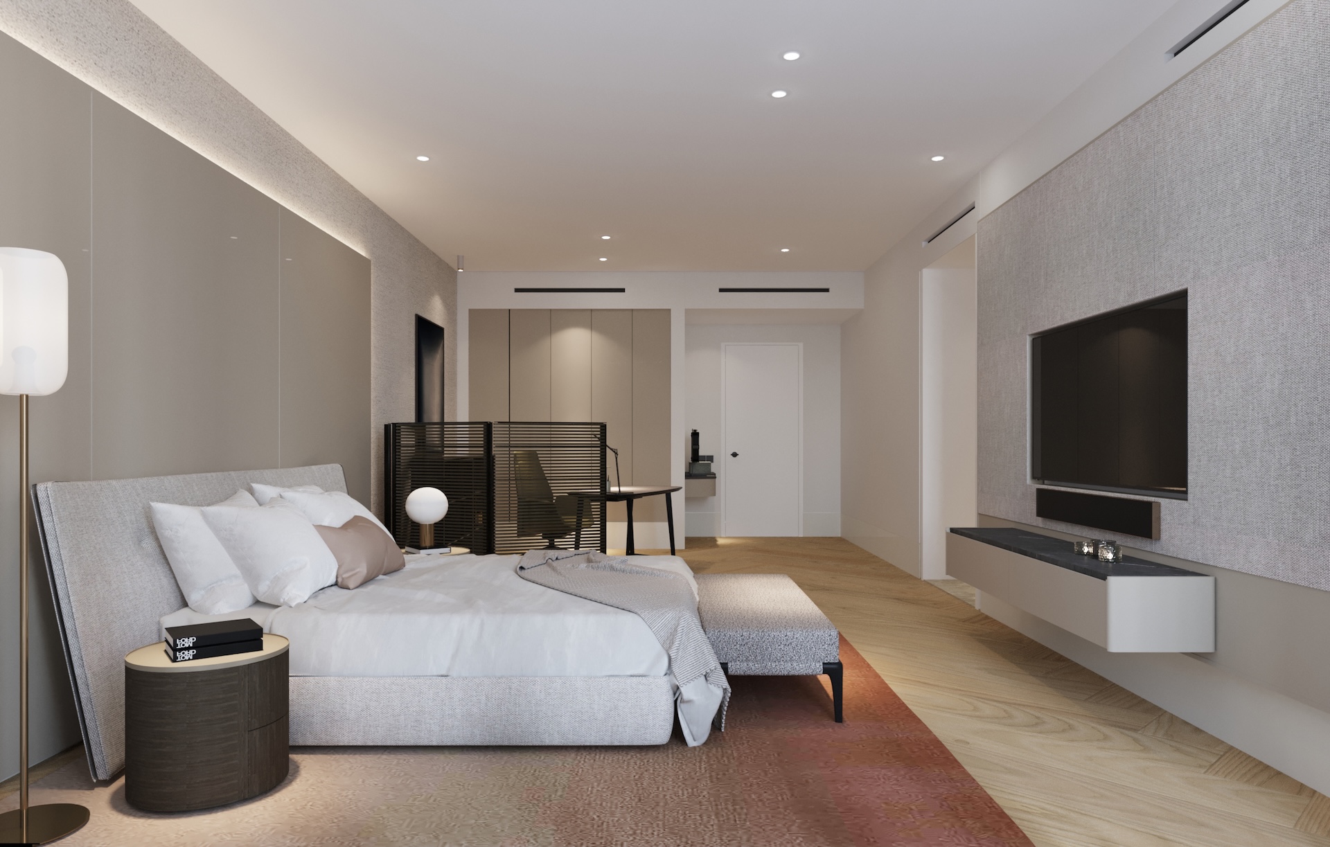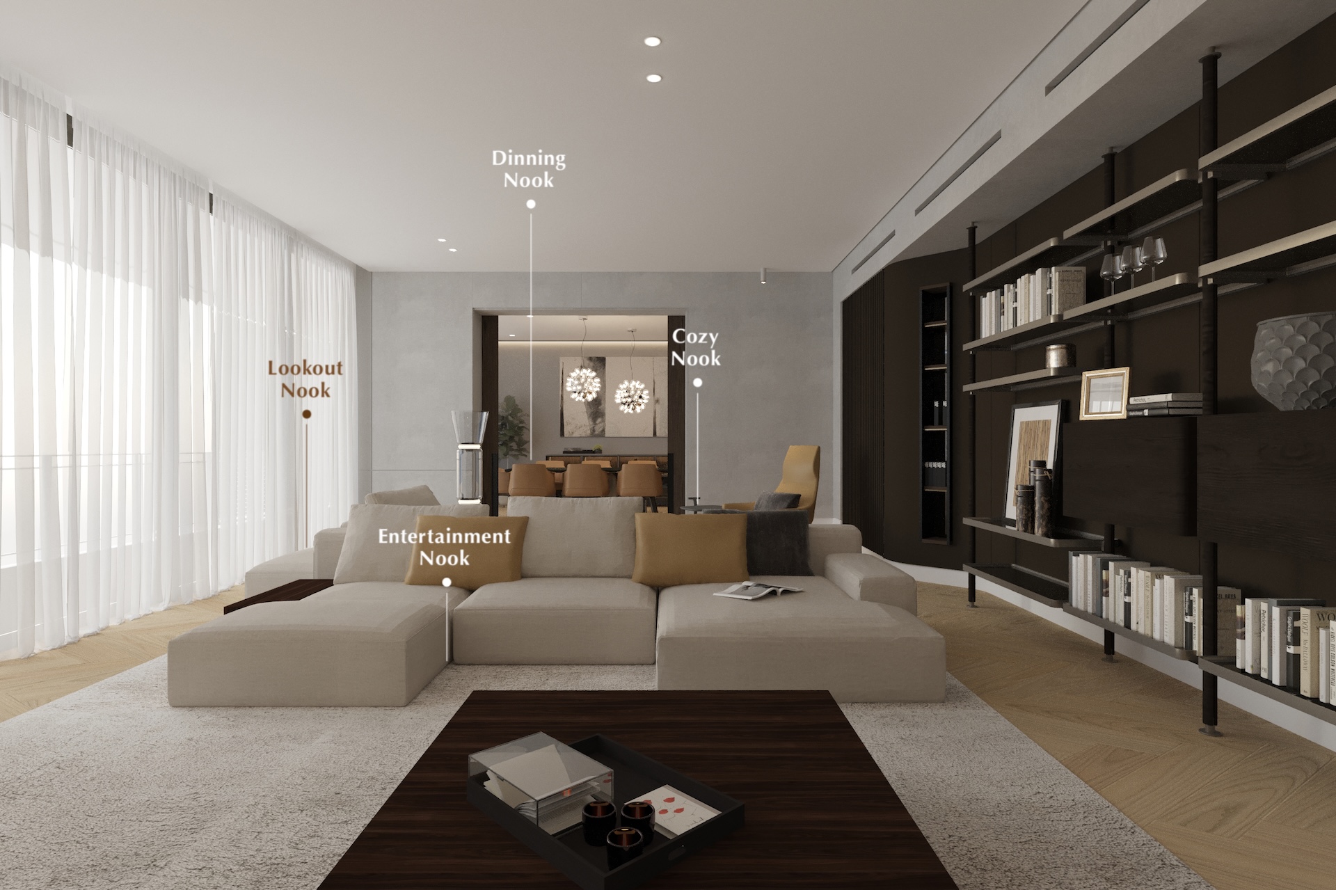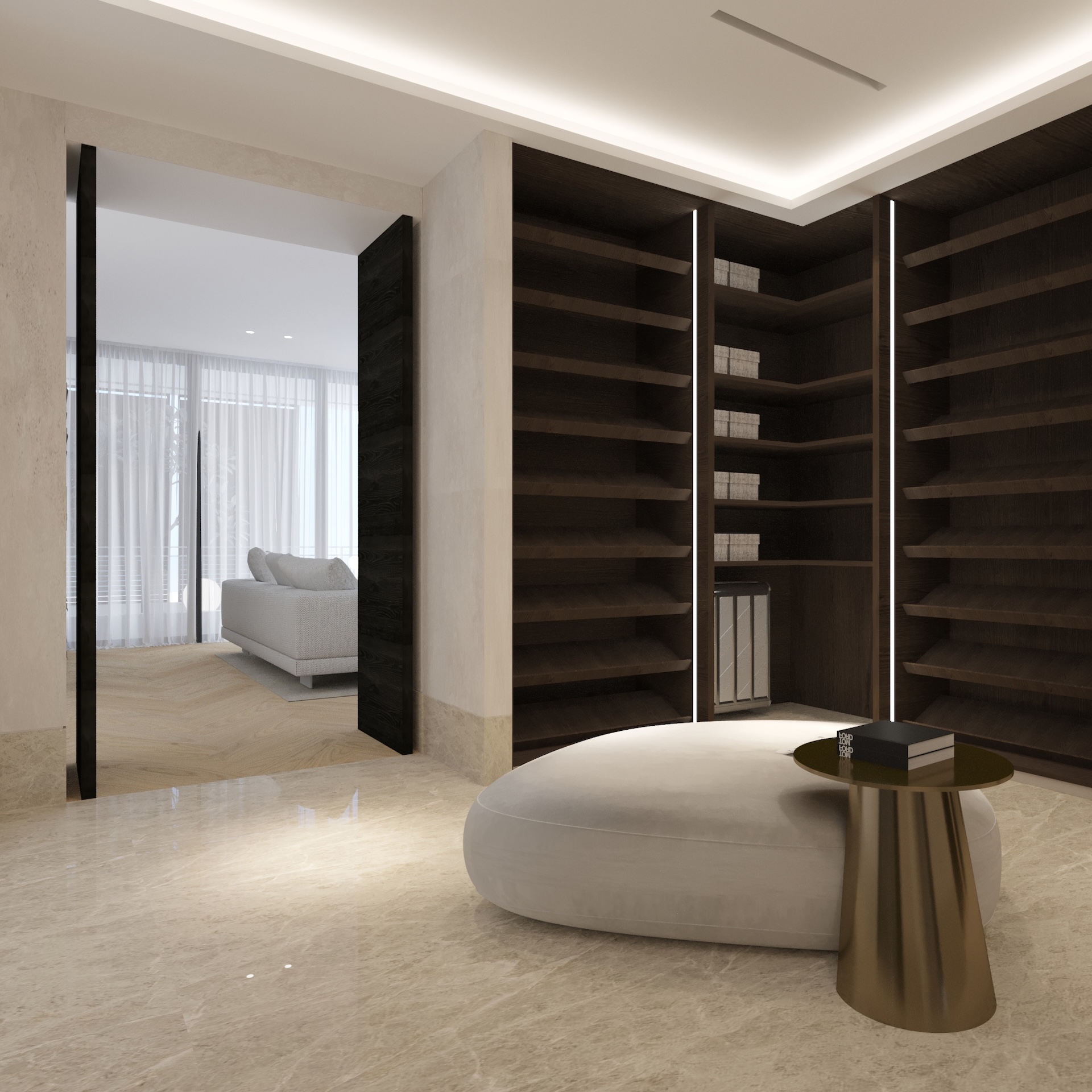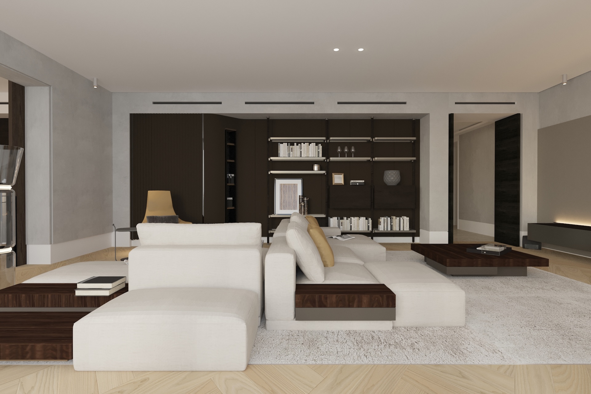 Embracing a dynamic lifestyle, the design features versatile loose furniture adorned with sophisticated soft finishes and materials.